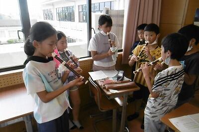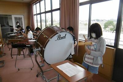 自分が演奏したい楽器を選び、それぞれの楽器でチームを組み、意欲的に練習していました。
