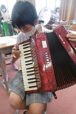 【アコーディオン。左手を巧みに動かしながら、上手に音が出るようになっていました。】