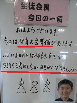 10月7日(金)、体育大会全体練習の3回目。最後の全体練習です。