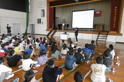 分かりやすいプレゼンで、子どもたちの目がスクリーンにくぎ付けになっていました。