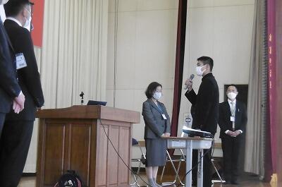 【生徒代表作文発表:「挑戦を結果につなげる」「本気で勉強に取り組む」「人の前に立ち、引っ張る役にどんどん挑戦する」】