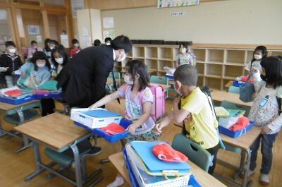 【教科書配付:ピカピカの教科書に大喜びの子ども達】