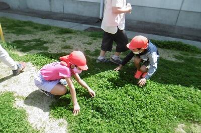 【四つ葉のクローバーを探す、ロマンチックな小学生】