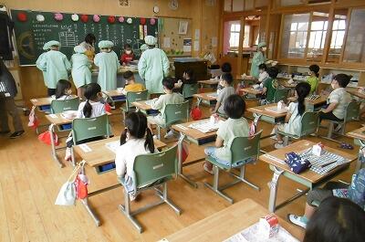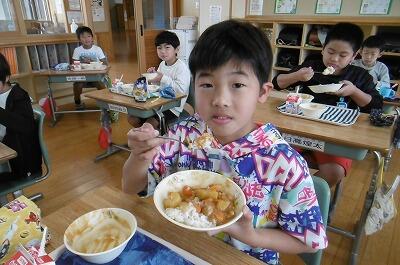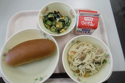 7月最後の週は、チャンポンにホットドックパン!シメは、夏野菜カレー(^_^)なすやピーマンがたくさん入っていました。おいしい給食を毎日ありがとうございました。みんなもりもり給食を食べているかなと教室をのぞいてみると、上新田から転校する子と別れを惜しんで、みんなで給食を食べている姿が見られました。さびしいですね…でもきっと新しい学校でもがんばってくれることでしょう。上新田っ子、みんなで応援していますよ!(8月の給食へとつづく~)