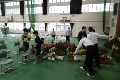 【教室大移動中:大人数の2年生は特に大変そう・・・。がんばれ、先生!】