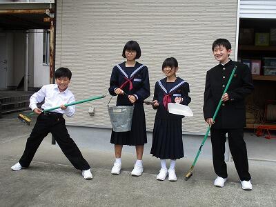 【黙々と上学伝統の「無言清掃」を続ける子ども達・・】