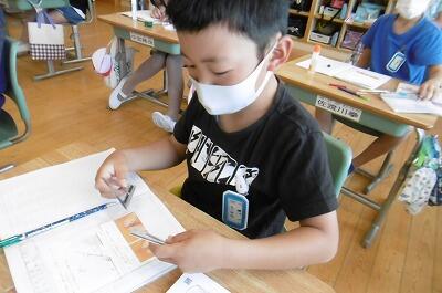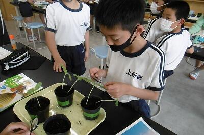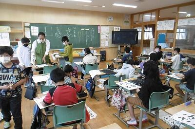 小学部5年生、総合的な学習の時間「お米学習」の様子です。