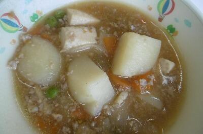 「くず粉を使った煮物、材料にくず粉をまぶして煮るもの。くず粉の代わりに片栗粉を使うことが多い。奈良県吉野地方がくずの名産地であることから、くず粉を用いた料理を「吉野~」というそうです。」