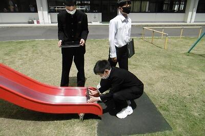 こわれた百葉箱を修理してくださっていました。おかげで、4年生理科「気温の変化」の学習ができます。ありがとうございました!