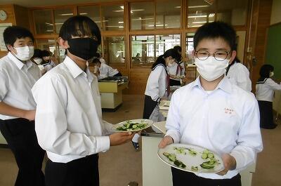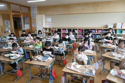 夏休みまで、のこり1週間…子どもたちは、厳暑の中よくがんばっています。7月に入って、季節にちなんだ花野菜サラダや七夕ゼリーが出ました。涼を感じるメニューでしたね。7月10日(木)は、給食試食会が行われ、保護者の皆様に学校給食の献立や味、栄養を知っていただく機会となりました。今年も新田学園の栄養教諭・渡部先生を講師としてお招きし、給食の栄養バランス等についてお話していただきました。保護者の皆様は「毎日、給食食べたいね。」「おいし~い!」と笑顔いっぱいでした(*^_^*)今週は、子どもたちが大好きなホットドック、そして夏野菜カレーで1学期をしめくくります。登校するのもあと4日!元気に過ごしましょう~
