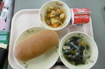 11月5日(水)は、ヴィアマテラス宮崎の選手が9名来校し、子どもたちと一緒に給食を食べました。この日のメニューは「米粉パン、牛乳、秋のかおりシチュー、花野菜サラダ」でした。シチューの中には、秋を代表するさつまいもやしめじがたっぷり入っていました。選手や学級の仲間と食べる給食はとてもおいしかったですね!一人で食事をするより、食事をする相手がいる方がより幸せを感じるそうです(*^▽^*)給食の後は、選手と一緒に運動場でサッカーをしたりおにごっこをしたり、みんなで楽しい時間を過ごすことができました!