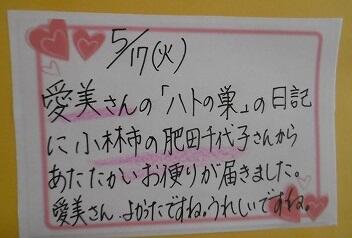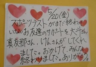 楽しかった思いが伝わってくる手紙ばかりでした。中学3年生も喜んでくれることでしょう。