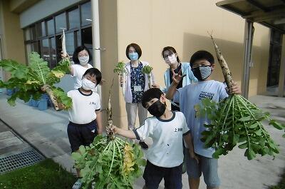 7月最後の週は、チャンポンにホットドックパン!シメは、夏野菜カレー(^_^)なすやピーマンがたくさん入っていました。おいしい給食を毎日ありがとうございました。みんなもりもり給食を食べているかなと教室をのぞいてみると、上新田から転校する子と別れを惜しんで、みんなで給食を食べている姿が見られました。さびしいですね…でもきっと新しい学校でもがんばってくれることでしょう。上新田っ子、みんなで応援していますよ!(8月の給食へとつづく~)