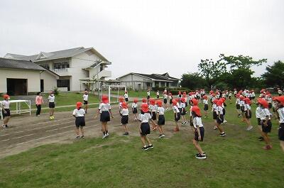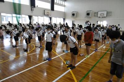 全校児童生徒で、称賛しました。