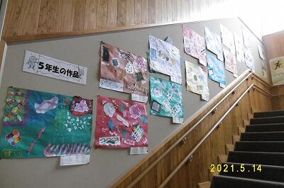 【「鯉のぼり」が元気に泳いでいました。年間をとおして、季節を感じさせる掲示物が、子供たちの来室を待っています。】