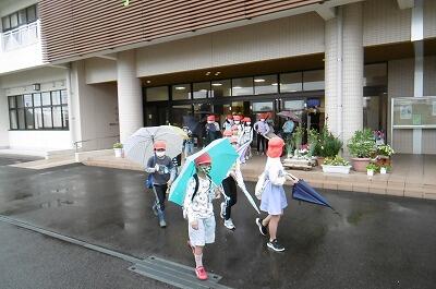服もランドセルも濡れ、靴下もびしょびしょ・・・、それでも元気に登校してくる子ども達に、強い心とたくましさを感じた、今朝の登校風景でした。