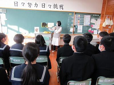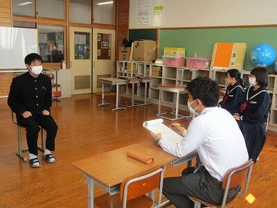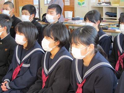 保健面、生徒指導面、学習面についての話を真剣に聞く生徒達】