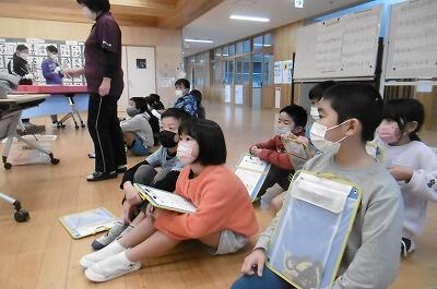 【卒業式で歌う曲のピアノ伴奏の練習をしている〇〇先生・・。その隣で・・・】