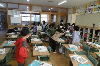 本日、「に関する絵はがきコンクール」において、入選した児童の表彰式が行われました。