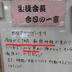保護者の皆様、地域の皆様、今学期も本校の教育活動へのご理解、ご協力をよろしくお願いいたします。