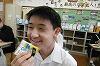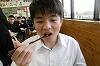 【箸の持ち方をほめられて、うれしそうな少年笑う