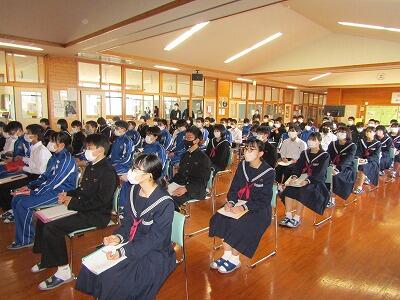 新型コロナ感染症防止の観点から、校内放送に切り替えて実施しました。