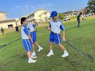 熱い陽射しの中、みんなよく取り組んでいましたねピース