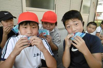 7月最後の週は、チャンポンにホットドックパン!シメは、夏野菜カレー(^_^)なすやピーマンがたくさん入っていました。おいしい給食を毎日ありがとうございました。みんなもりもり給食を食べているかなと教室をのぞいてみると、上新田から転校する子と別れを惜しんで、みんなで給食を食べている姿が見られました。さびしいですね…でもきっと新しい学校でもがんばってくれることでしょう。上新田っ子、みんなで応援していますよ!(8月の給食へとつづく~)