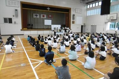 【小学部で、特にあいさつがすばらしい2名の児童を紹介】