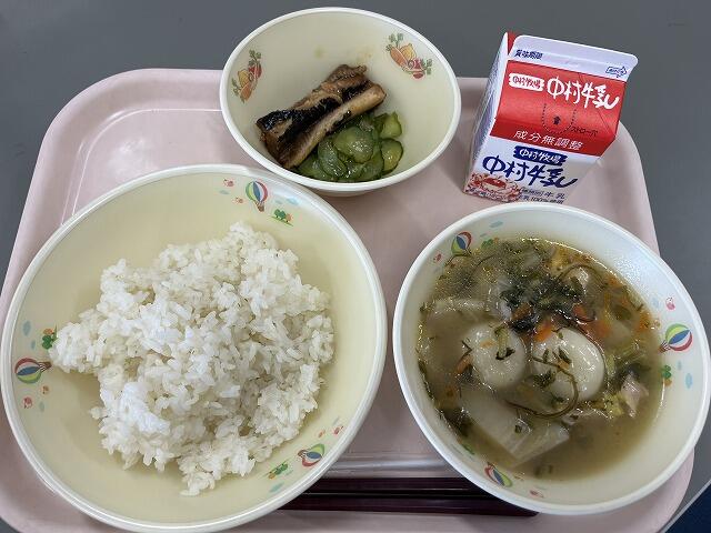 麦ご飯 牛乳 いわしのしょうが煮(きゅうりの梅和え) 七草雑煮