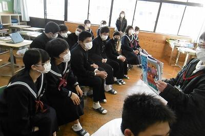 【生徒と一緒に読み聞かせ・・・。読んでいるのは?】