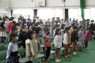 【あこがれの6年生の晴れ姿を真剣な表情で見つめる在校生】