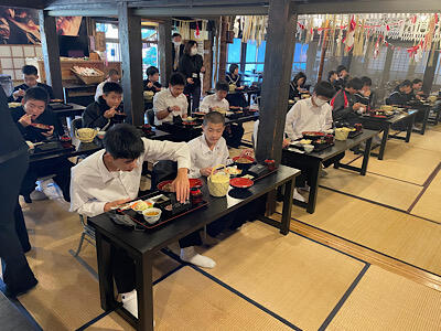 残さず綺麗に食べました。お店の方に「綺麗に食べてくれてありがとう」と感謝の言葉もいただきました。日頃の給食の時間が活かされています。