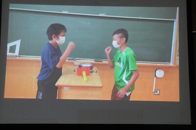 【まずは、小学部団長同士による、昭和の大ヒットゲーム?「たたいてかぶってジャンケンポン!」】