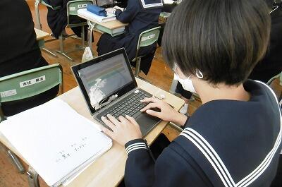 【授業の感想等をタブレットに入力し提出】