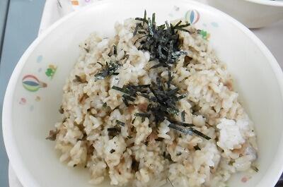 【おいしく炊き上がりました!宿泊学習の体験が生きていますね!ちょっとおこげもできていておいしくいただきました。】