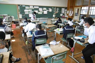 今日から中学部は期末テスト・・・。初日は「英語」「理科」「保体」のテストでした。みんな、よい点数を取ろう!と真剣に取り組んでいました。