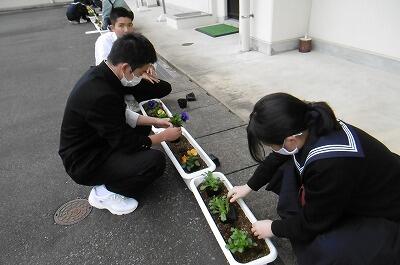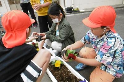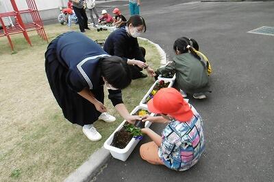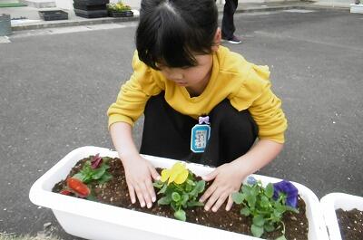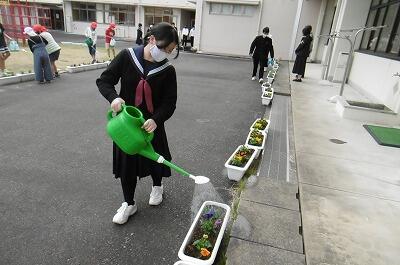 】【人権の花の水やりをしている5年生。これから水が冷たくなるけど、よろしくお願いします!】