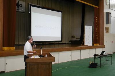 【担当の話:ドロップ(身をかがめる)カバー(頭を守る)ホールドオン(動かない)が大切である。(さすが英語の先生です。)】