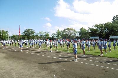 天候に恵まれ、初めて運動場で行う、体育大会全体練習の様子をお届けします。