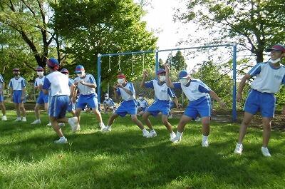 最後は、久しぶりの青空の下、思いっきり体を動かしていた1、2年生合同体育の様子です。