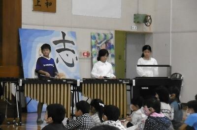 【心地よいリズムと共に、迫力のある合奏を聞かせてくれました。曲の間に入るかけ声も元気いっぱいの3、4年生らしくてとてもよかったです。】