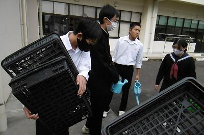 】【人権の花の水やりをしている5年生。これから水が冷たくなるけど、よろしくお願いします!】