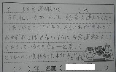「いつも給食当番の仕事を手伝ってくれてありがとう!」の感謝の気持ちを込めて・・・、