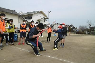 【6年生男子2人と綱引き対決!白熱の名(迷)勝負を展開していました。】