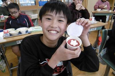 【卒業の喜びをかみしめながら、いただきます!(中学校に入学したら、またすぐに給食が始まるんですけどね!)】
