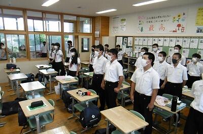 【「ドン!とかかってきなさい!」と王者の風格3年生。堂々と校歌を斉唱してくれました。】