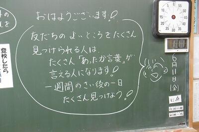 【小学部3年生教室黒板・・・。毎朝、担任からの熱いメッセージが書かれています。】