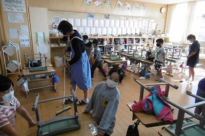 【重い机も力を合わせて・・・。中学部の生徒が優しく教えてくれます。】