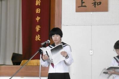 【まずは、児童生徒会長と「上学宣言」確認のための読み合わせ】